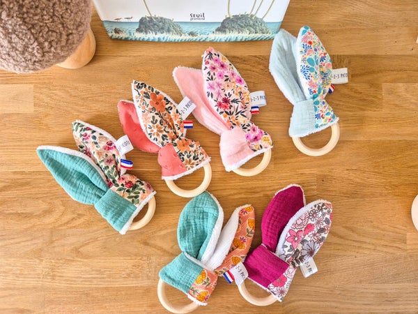 Un anneau de dentition ou hochet pour les tous petits pour soulager les gencives de bébé tout en s' amusant.