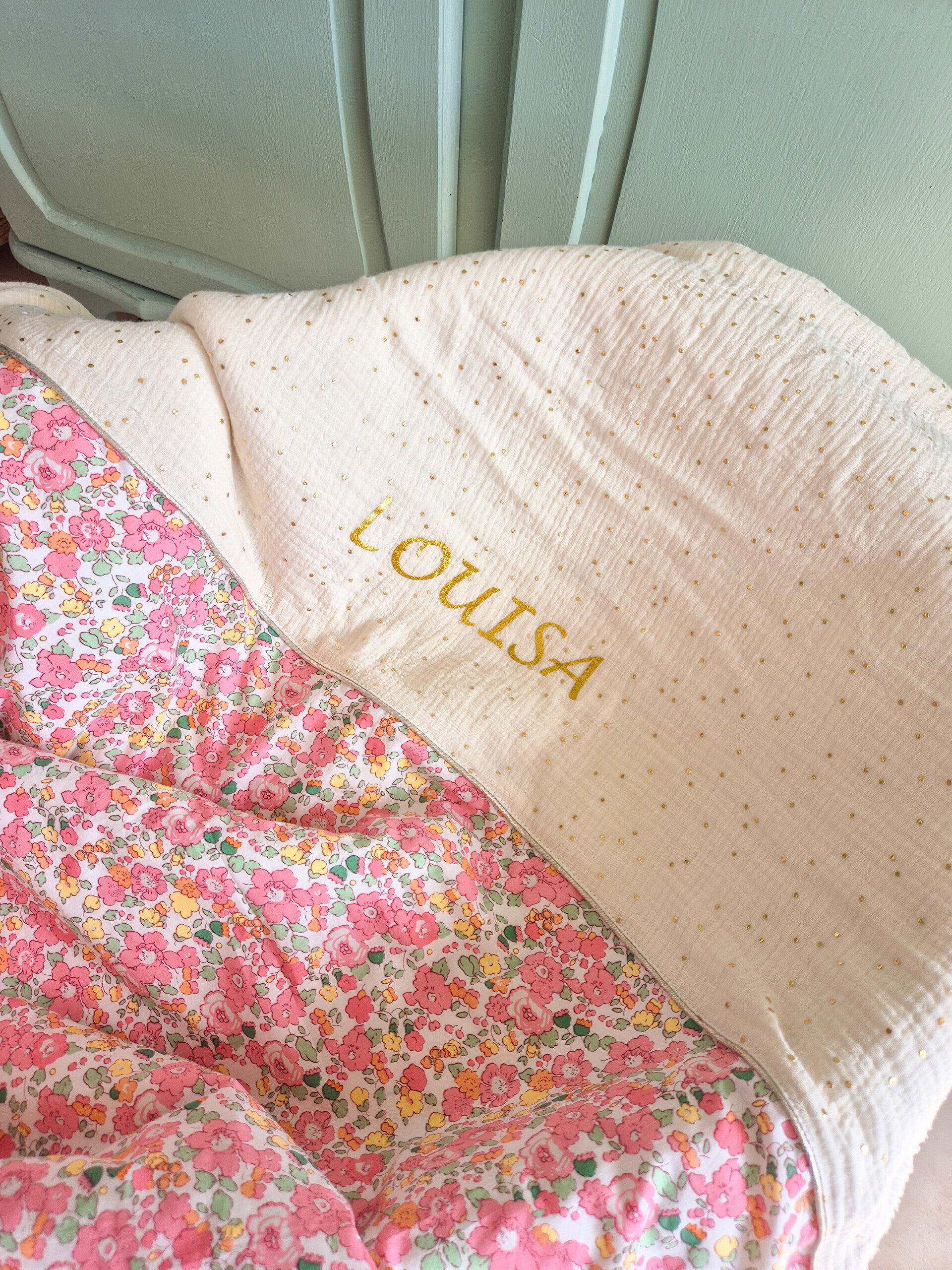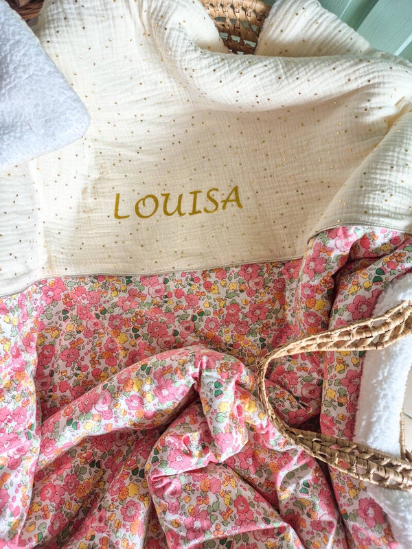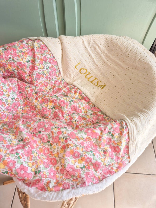 Cette couverture de Louisa est chaude et douillette pour accueillir bébé à la naissance . Nos couvertures sont uniques , personnalisable .