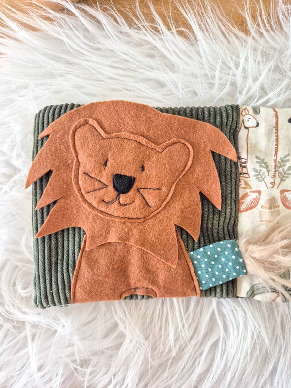 Un livre d ' éveil en tissu ,pas comme les autres. On y trouve des motifs colorés et fantaisie qui vont attirer toute l'attention de bébé .